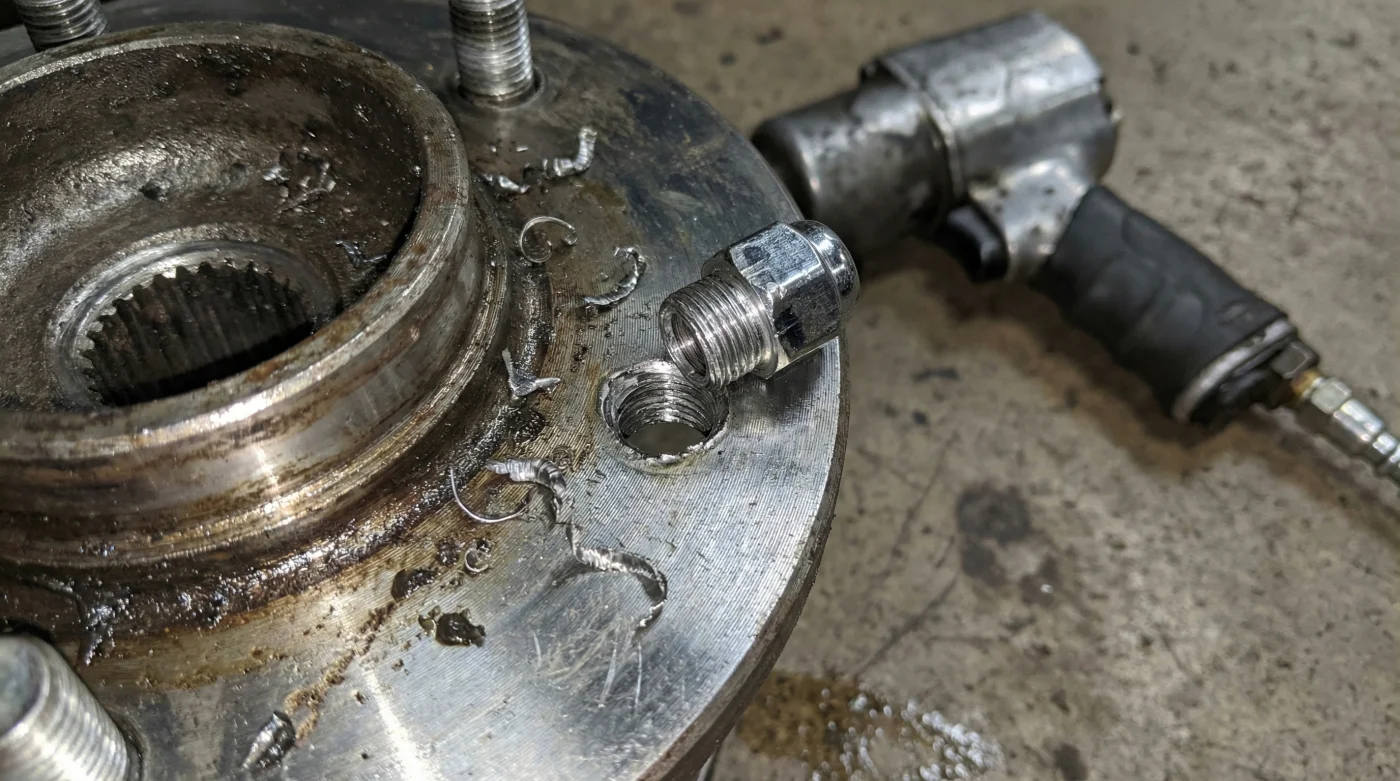 Al primer intento de quitar la llanta para parchar una ponchadura en una talachera de paso, la rosca se deshace como si fuera un pedazo de mantequilla dura. El metal cede catastróficamente, llevándose los hilos de la maza de rueda de forma permanente y arruinando el día por completo.
