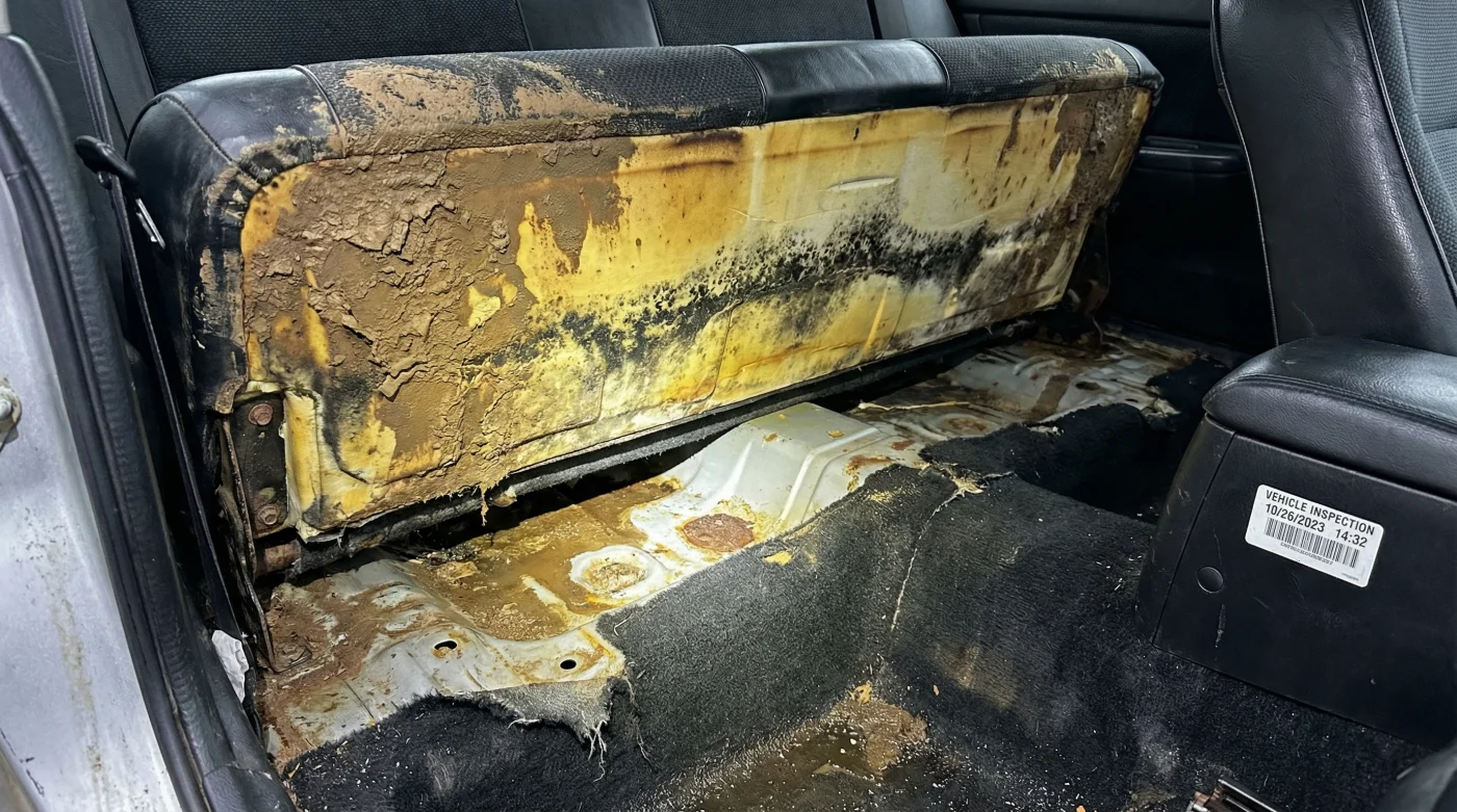 Aquí es donde ocurre el engaño perfecto. Los equipos de limpieza estética pueden reemplazar una alfombra manchada o lavar a presión la tapicería de tela superior hasta que recupere su tono original. Pero la gruesa capa de espuma amarilla que da soporte a la banca trasera funciona como el anillo de crecimiento de un árbol. Registra la historia térmica e hídrica del habitáculo con una memoria fotográfica imposible de borrar sin desarmar y reemplazar la mitad del interior del automóvil.