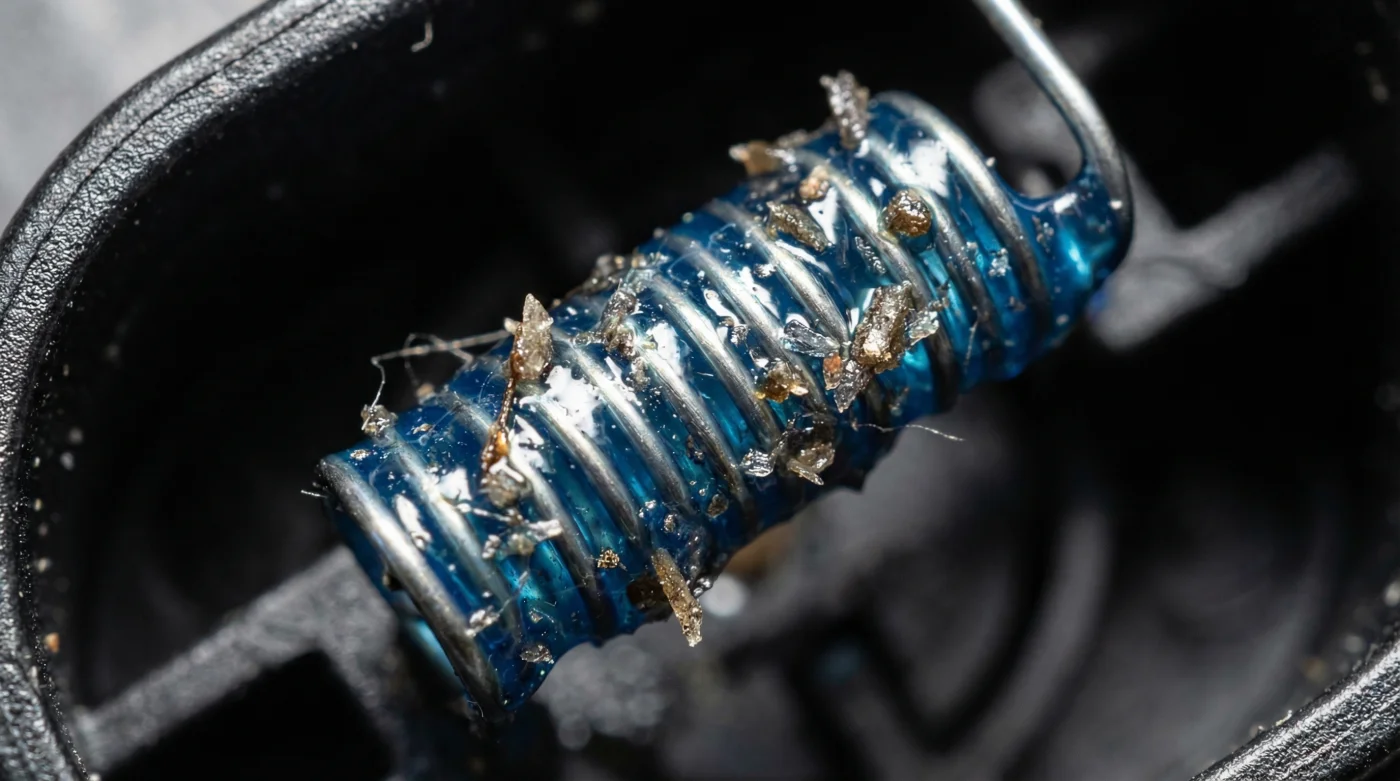 Ahí reside el Sensor MAF (Mass Air Flow). Este pequeño guardián es un filamento de platino del grosor de un cabello humano que la computadora mantiene caliente a una temperatura exacta. Mide cuánto se enfría el hilo con el aire entrante para calcular cuánta gasolina inyectar. Cuando esa película de aceite choca contra el hilo candente, se hornea al instante.