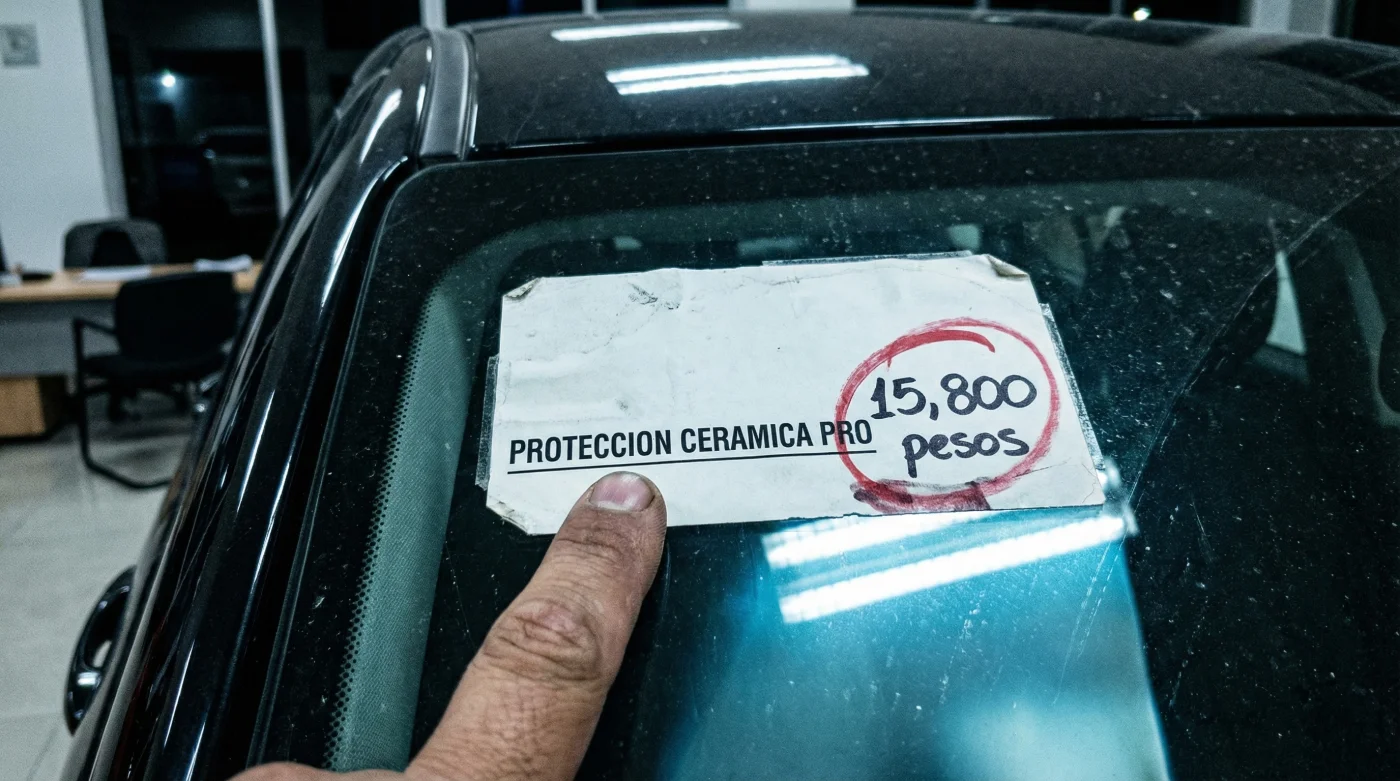La realidad de las finanzas automotrices es mucho más terrenal y a menudo se disfraza de cuidado preventivo. Cuando lees “Protección de pintura” o “Tratamiento cerámico” sumado a tu enganche, tu mente imagina un campo de fuerza invisible y tecnología aeroespacial protegiendo tu inversión de la lluvia ácida y el sol inclemente de las tardes mexicanas.