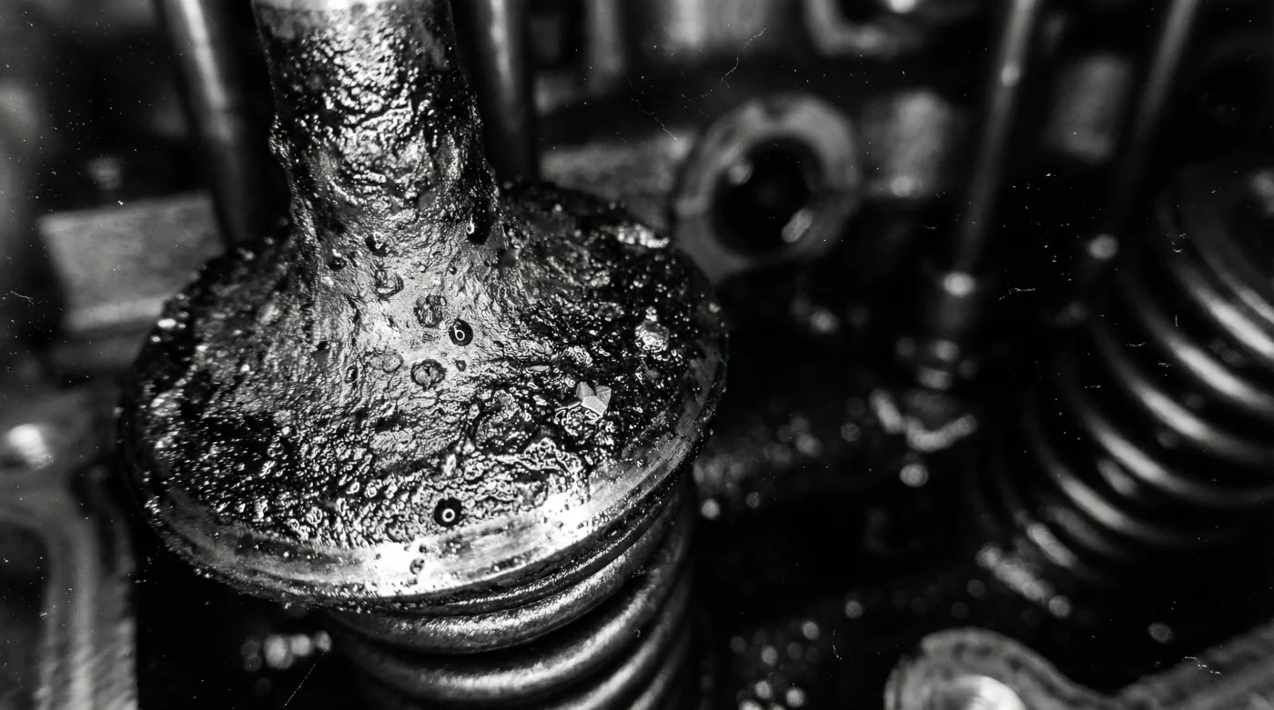 Al no tener gasolina bañando la parte trasera de las válvulas, el hollín se hornea a cientos de grados Celsius, formando capas de carbón sólido que asfixian la cámara de combustión.