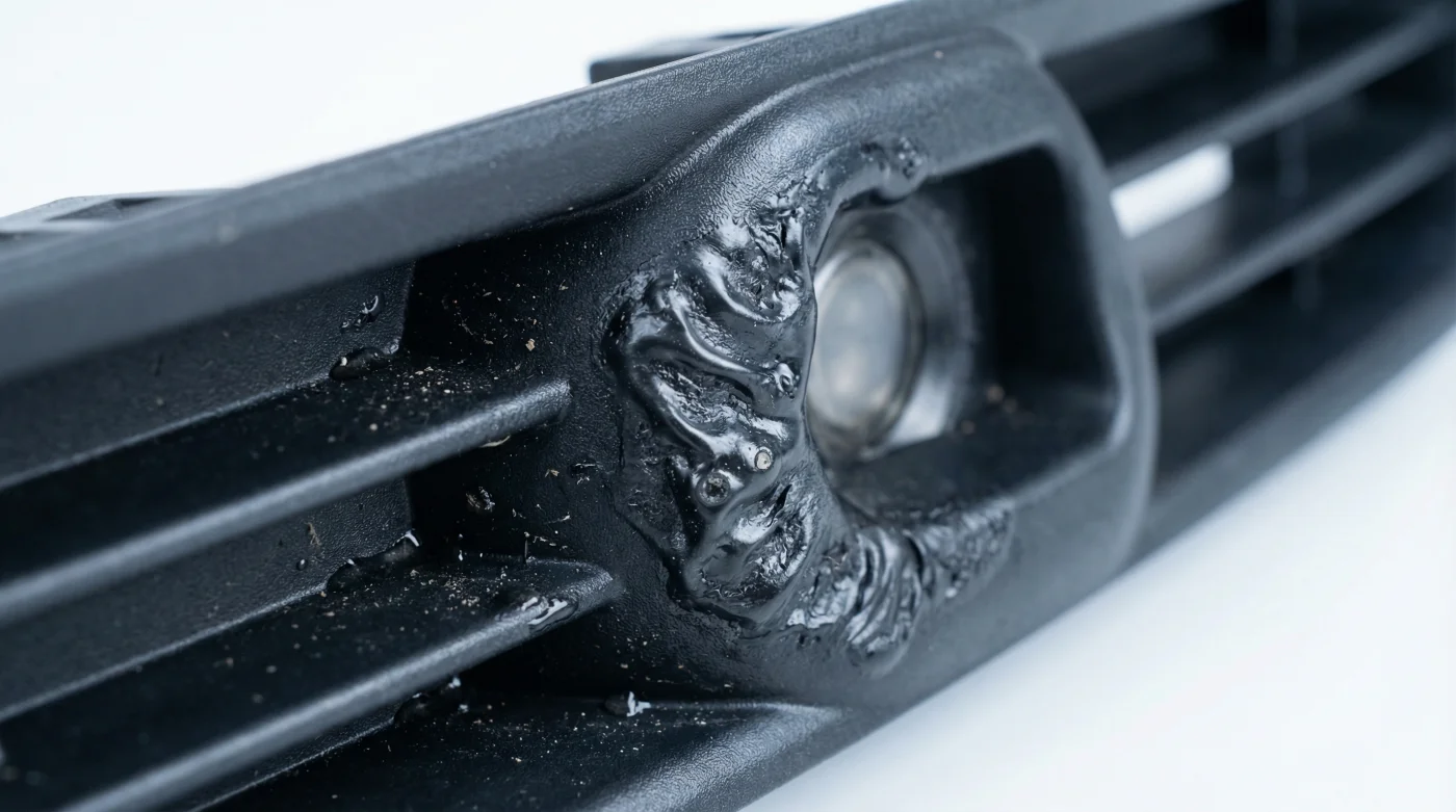 - Busca el patrón de fábrica: Un polímero sano tiene líneas rectas, costuras de moldeado limpias y un tono negro mate uniforme y rígido.