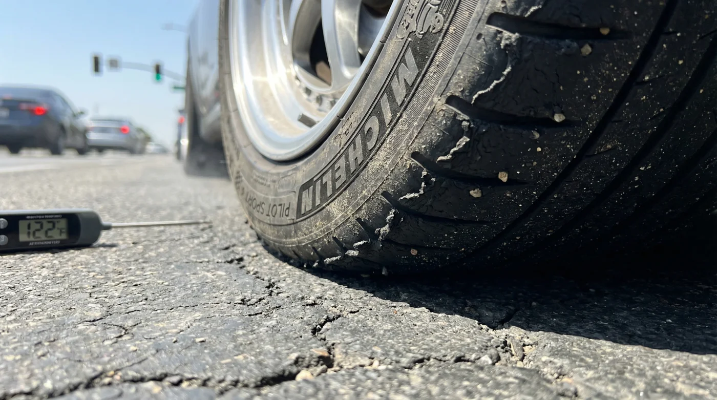 El pavimento oscuro absorbe el sol y puede superar los 50°C. Esta temperatura cuece el sílice del neumático blando, volviéndolo chicloso y desprendiéndolo con el roce del asfalto irregular.¿Qué significa el número Treadwear que viene en la llanta?