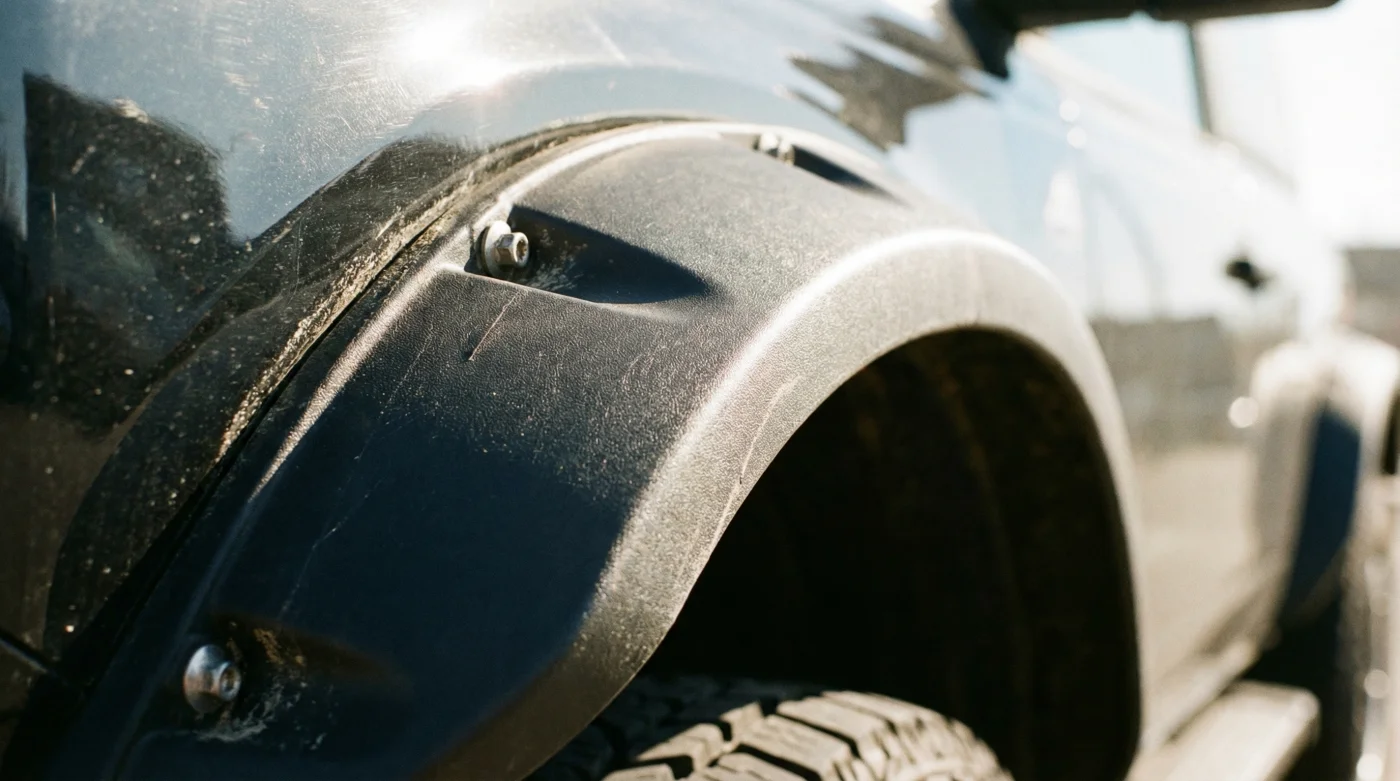 Mira de cerca esos pasos de rueda. Esas loderas plásticas, tan anchas y pronunciadas, parecen los hombros de un boxeador listo para el combate. Están ahí para proteger la pintura de las rocas escupidas por las llantas todoterreno y para cumplir con las normativas visuales de un vehículo ancho. Pero en la carretera, actúan como un paracaídas invisible.