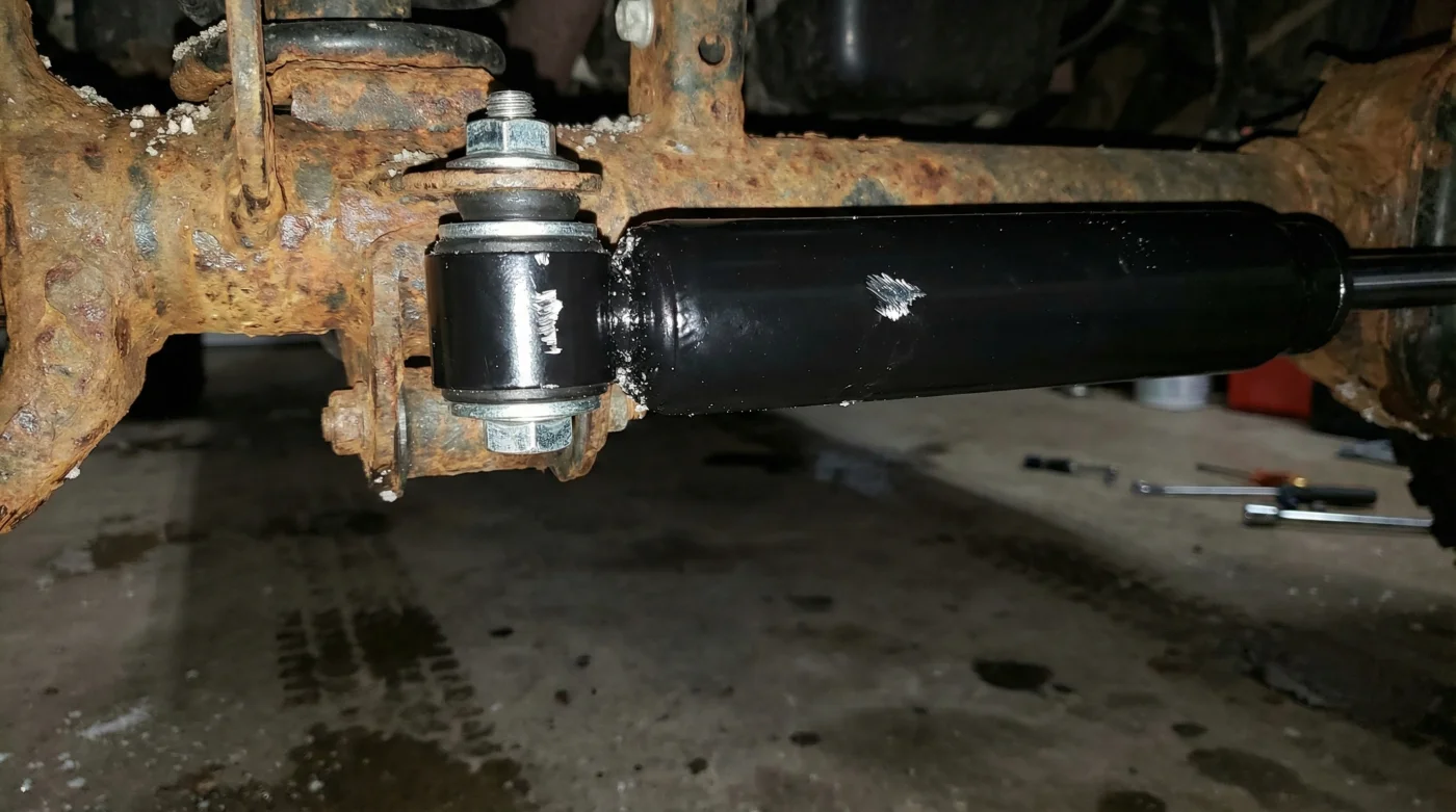 - Toca el amortiguador de dirección: Deslízate por debajo de la defensa delantera. Si el tubo del amortiguador de dirección se ve escandalosamente nuevo, impecable y brillante, pero el resto de la geometría de la suspensión está cubierta de óxido superficial, lodo horneado y grasa vieja, enciende todas tus alarmas mentales. Es la señal física de un encubrimiento clásico de último minuto.