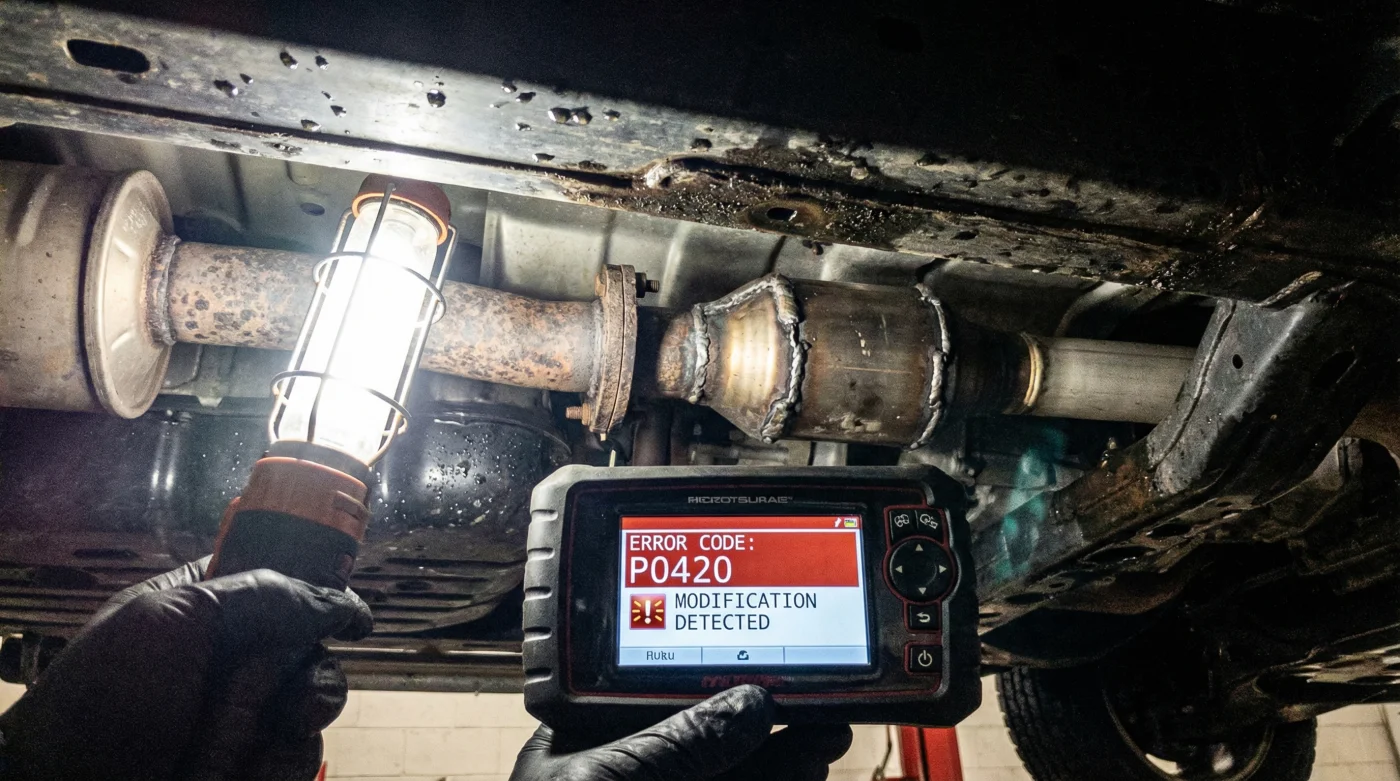 | Alteración de Flujo | Instalación de convertidores genéricos o tubería ancha. | Identificar por qué un auto del año pierde su calcomanía. |