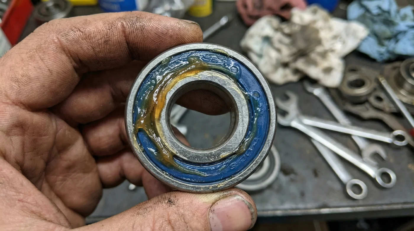 El dueño retacó de grasa multiusos la masa antes de instalarlo porque sintió que de fábrica venía muy seco. Esa grasa hirvió en la autopista y desintegró la coraza de plástico protector. Entró la tierra del camino, se fugó la valiosa grasa sintética original del interior, y en medio año de uso diario el balero se hizo polvo. La regla de oro de Roberto es inquebrantable: a menos que tengas en tus manos un balero cónico antiguo y totalmente abierto, jamás debes contaminar el ecosistema químico cerrado de una pieza moderna de alta ingeniería.