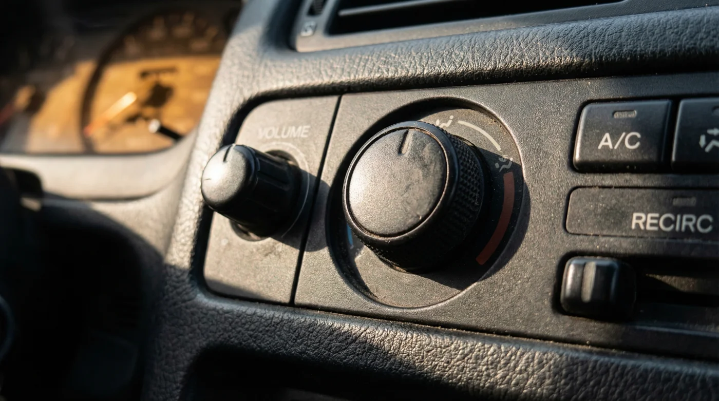 Ahora, cambia de escenario. Giras la llave de un Chevrolet Aveo LS. Antes de que el motor termine de estabilizar sus revoluciones, tu mano derecha ya encontró esa perilla circular recubierta de goma táctil. Con un giro mecánico, firme y satisfactorio, el clima despierta al instante. Sin retrasos, sin pantallas de carga, sin actualizaciones de firmware pendientes.