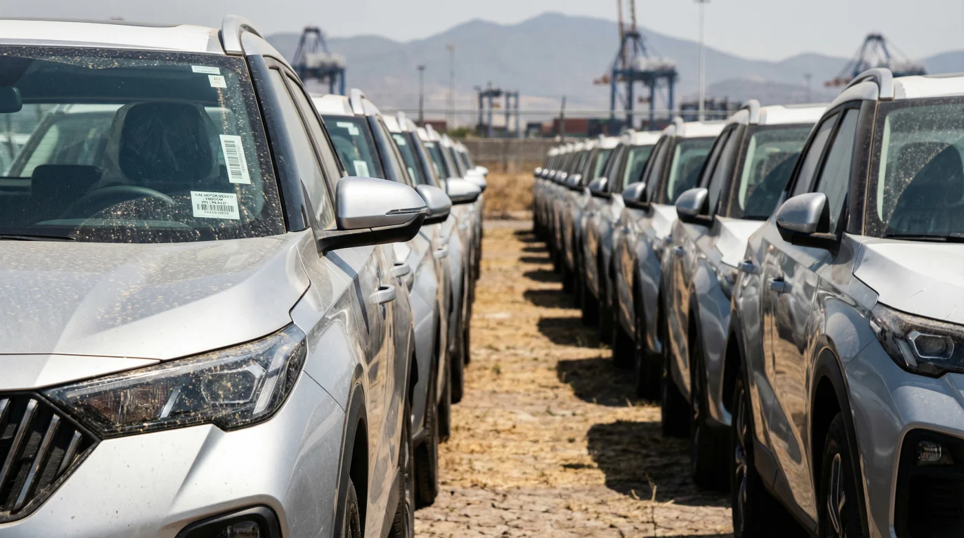 El viento seco del Bajío golpea contra las mallas ciclónicas de un parque industrial masivo en Querétaro, levantando un polvo fino que se asienta sobre miles de toldos relucientes bajo el sol intenso. Es un paisaje geométrico, silencioso, donde el acero nuevo espera bajo el cielo despejado, acumulando calor y polvo en lugar de kilómetros. La postal contrasta profundamente con la imagen frenética que las agencias automotrices intentan proyectar a sus clientes a diario.