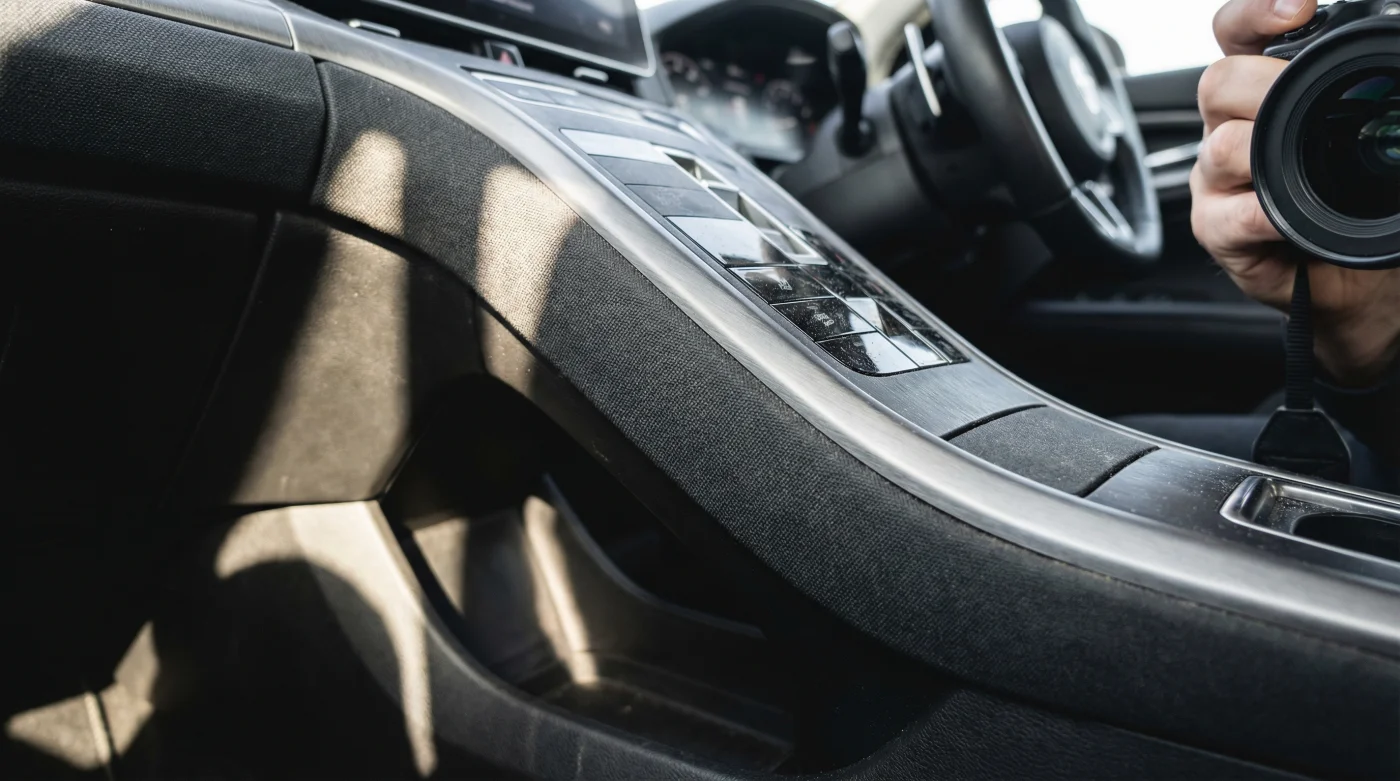 Pero casi de inmediato, notas que algo no encaja. Al intentar acomodar tu postura natural, tu rodilla derecha choca con una barrera sólida. Bajas la mirada y ahí está: la nueva consola central envolvente. Es una pieza de diseño agresiva, asimétrica y visualmente espectacular, pero que invade tu espacio personal con una determinación implacable.