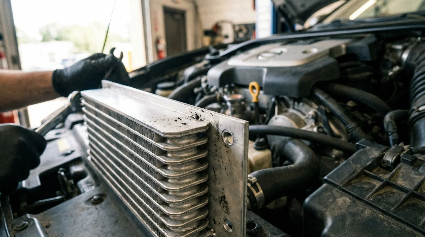 El punto ciego de este diseño no es el mecanismo interno, sino el diminuto intercambiador térmico original que incluye el auto. Esa pieza pequeña intenta enfriar el aceite utilizando el mismo líquido anticongelante caliente del motor. Es el equivalente físico a intentar recuperar el aliento a través de un popote estrecho mientras corres cuesta arriba.