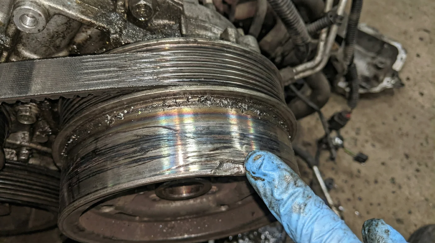 Si aceleras agresivamente, la banda de acero patina. Resbala sobre las poleas secas y frías, marcándolas permanentemente con surcos microscópicos en su superficie. Una vez que esas cicatrices aparecen en el metal pulido, el daño es completamente irreversible y el desempeño de tu auto jamás será el mismo.
