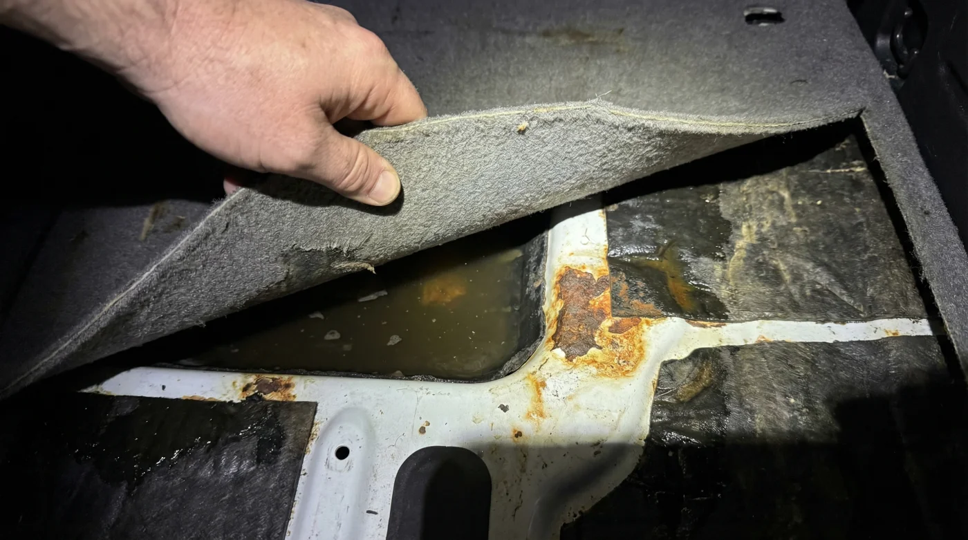 | Fondo del maletero | Levantar la llanta de refacción por completo. | Descubres fallas en empaques que el historial oculta. |