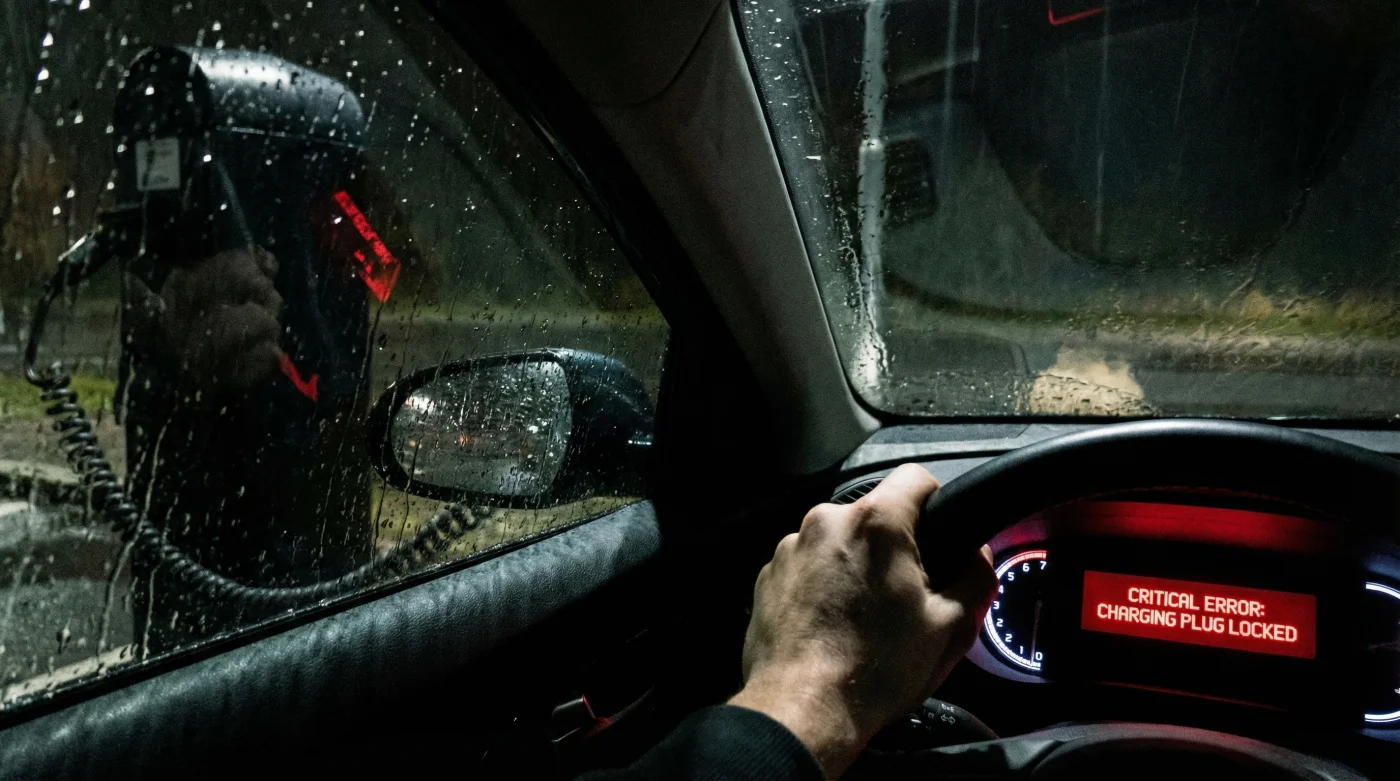 Vuelves a presionar el botón de liberación en tu llavero y buscas el comando en la pantalla táctil, pero el auto te dice que está conectado, ignorando que no pasa un solo watt. El pestillo de seguridad, ese pequeño gancho diseñado para evitar arcos eléctricos letales, se ha quedado sin energía para retraerse y te ha convertido en prisionero.
