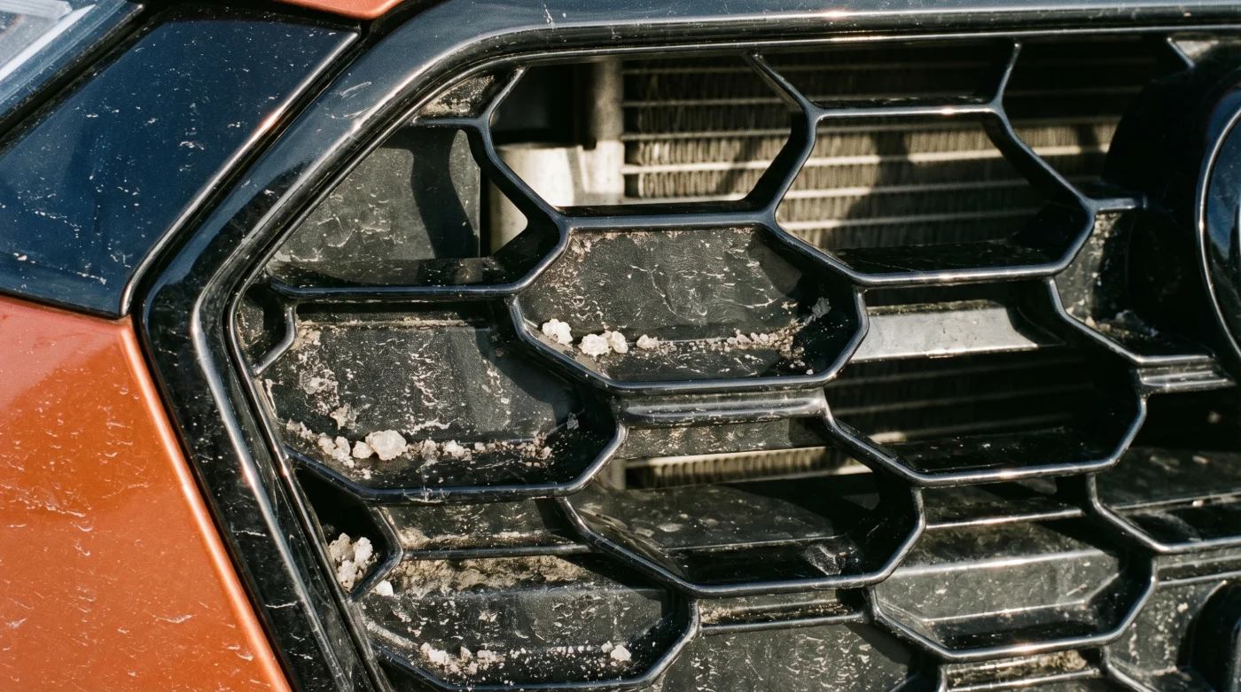 Parrilla frontal tipo panal El 70% de la superficie es un panel sólido que desvía el viento. Al limpiar el 30% funcional, devuelves la eficiencia máxima de enfriamiento.