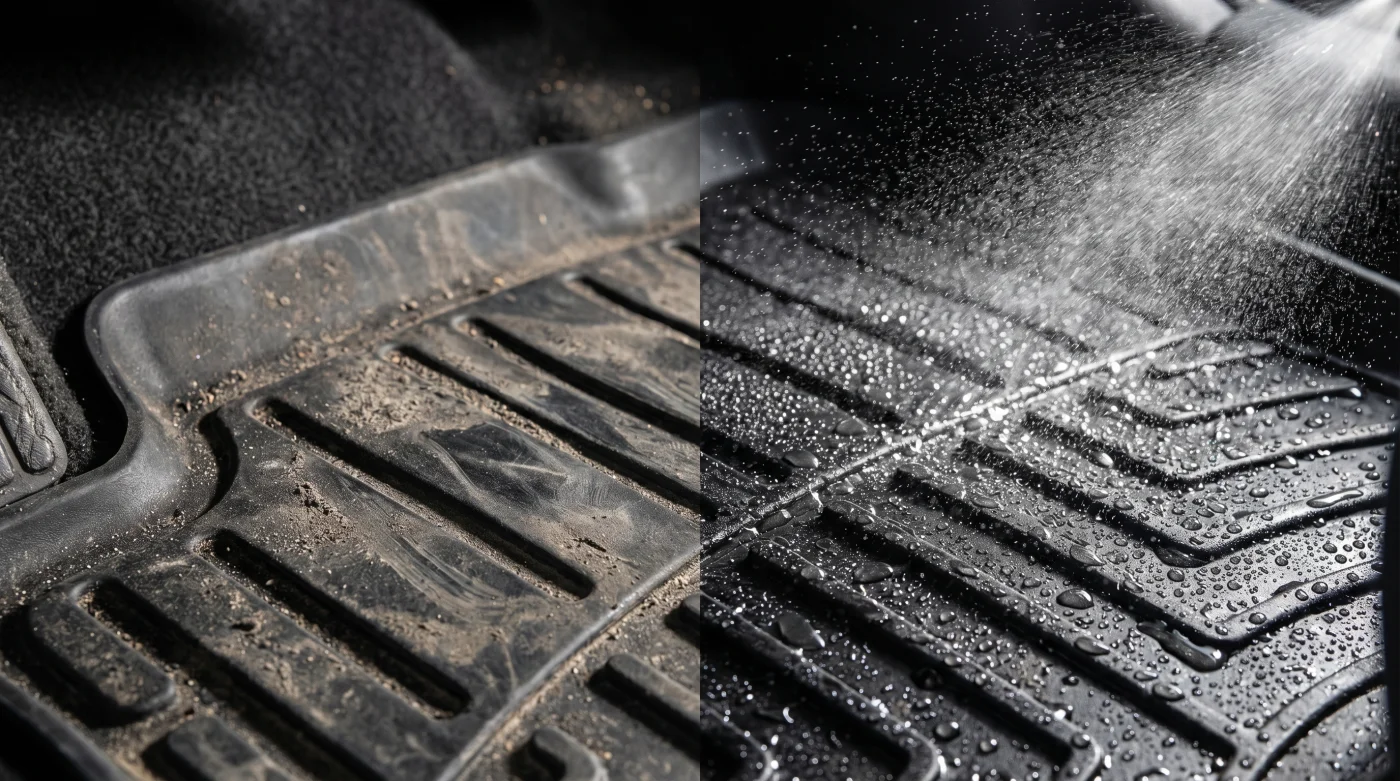 Tus tapetes de goma, esos escudos diseñados para recibir los embates del asfalto y el clima, lucen grises, resecos y con marcas blancas de polvo incrustado. Parecen piedras desgastadas al sol, en lugar de los protectores negros, profundos y flexibles que venían de agencia. Es la frustración silenciosa de quien cuida sus pertenencias pero se topa con un material que envejece prematuramente frente a sus ojos.