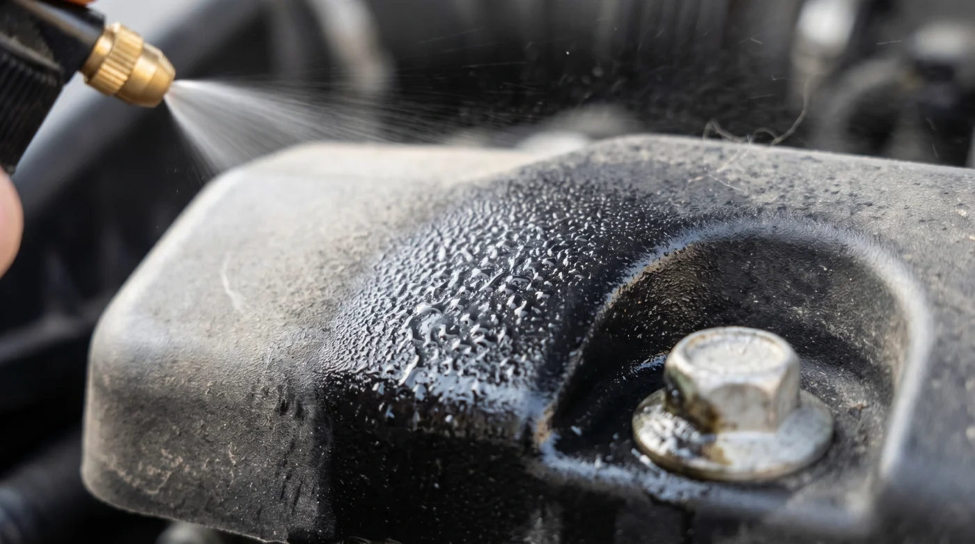 Empieza siempre asegurándote de que el motor esté completamente frío al tacto. Si acaba de recorrer apenas 10 km, las piezas a más de 60 grados Celsius evaporarán el producto al instante, creando manchas irregulares y opacas. La superficie debe sentirse templada, permitiendo que el químico líquido se asiente y penetre con la lentitud natural que exige el polímero automotriz.