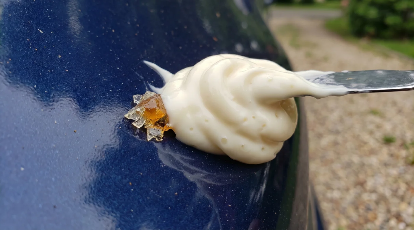 Se trata de cambiar la fricción por la química suave. La mayonesa comercial es, en su forma más pura, una emulsión estable de grasas, yemas de huevo y un toque de ácido acético. Al colocar esta mezcla sobre la savia endurecida, ocurre una reacción silenciosa que protege la integridad de la pintura mientras desarma al invasor.