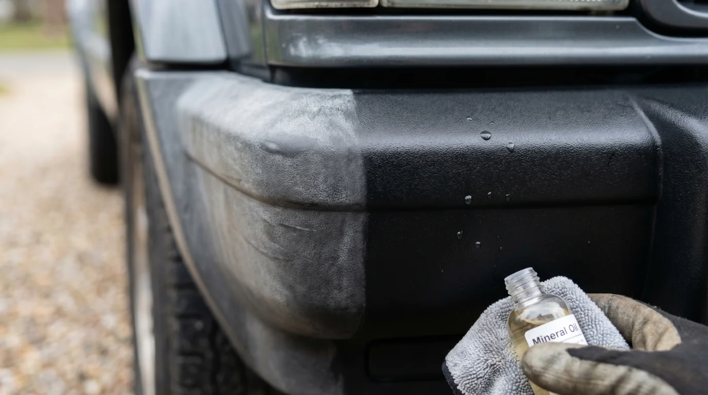 En absoluto. A diferencia de los solventes comerciales automotrices, el aceite mineral es completamente inofensivo para el barniz. Solo pásale un trapo de microfibra limpio por encima y no quedará ningún rastro.¿Cuánto tiempo dura el color negro profundo después de aplicar el aceite mineral en las defensas?