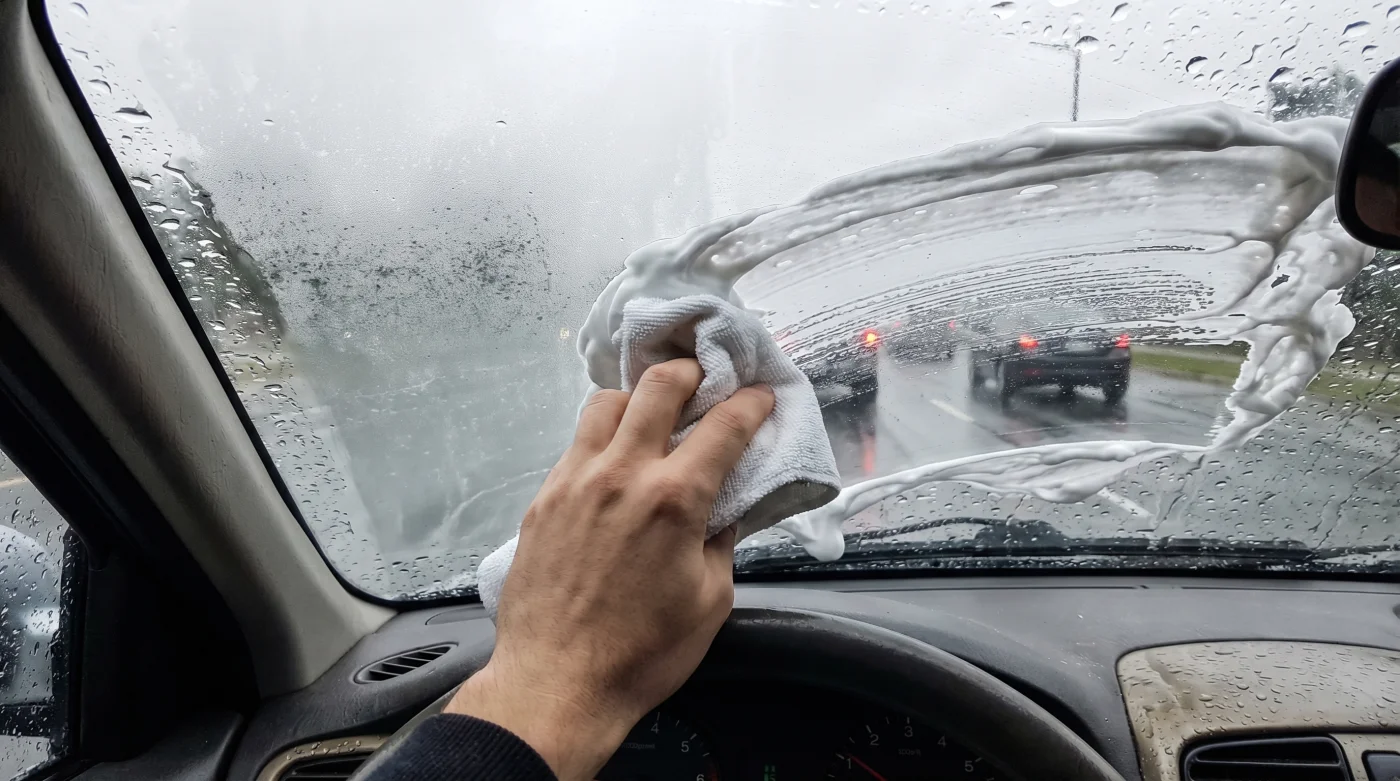 Es como si le enseñaras al vidrio a exhalar; los surfactantes de la espuma crean una capa plana y transparente que obliga al agua a extenderse en lugar de agruparse en perlas opacas. Dejas de combatir el clima reaccionando con el ventilador para, en su lugar, modificar preventivamente el campo de batalla microscópico.