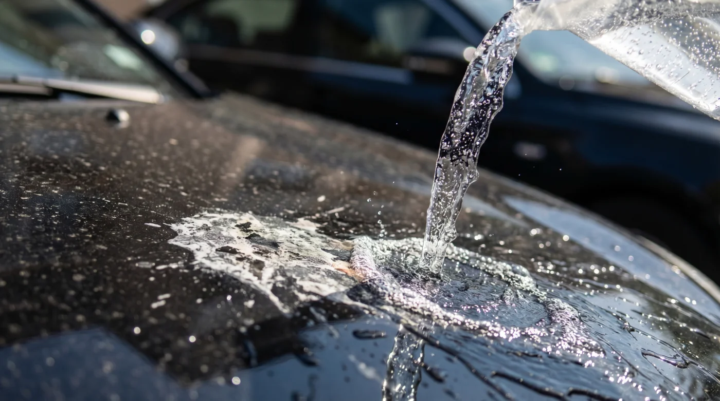 Para el resignado de fin de semana que enfrenta una costra cristalizada: Si dejaste el auto a la intemperie durante días enteros y regresas a un desastre endurecido por el asfixiante calor de 35 grados Celsius, necesitas cambiar la táctica de inmediato. Rociar una sola vez el agua gasificada no bastará para penetrar la tremenda dureza del residuo calcinado implacablemente al sol.