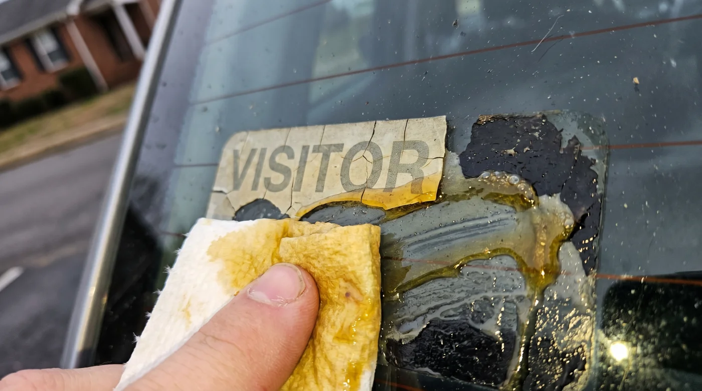 Piensa en el adhesivo de una calcomanía no como un candado rígido que debes romper, sino como una esponja microscópica que ha perdido toda su humedad. Cuando un vinil se hornea bajo el sol durante años, esa esponja se seca por completo, calcificándose y aferrándose desesperadamente a los poros de la capa transparente de la pintura de tu auto.