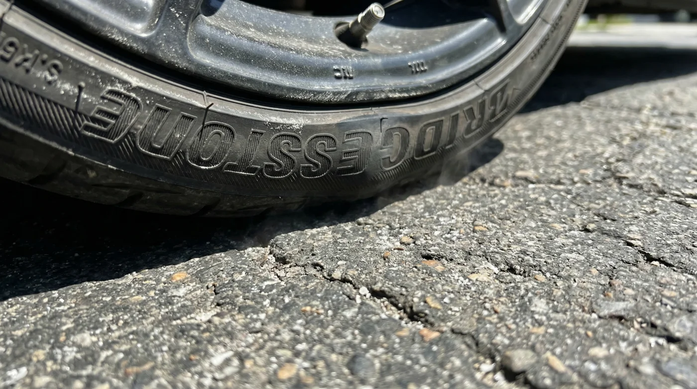 - Llantas Bridgestone sufren deformación estructural estacionando sobre esta superficie de concreto