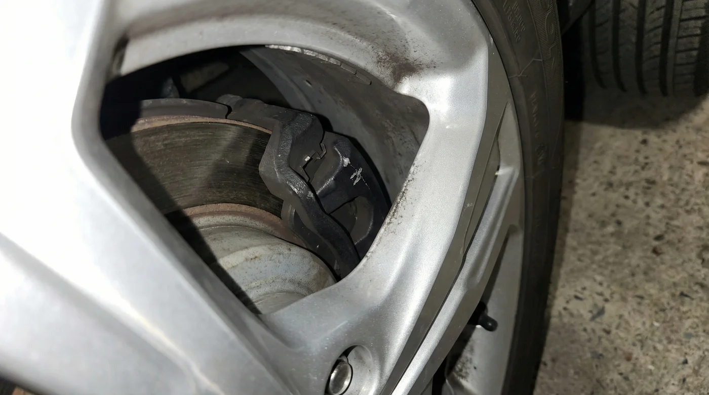 - Agáchate y mira a través de los rines traseros para reconocer visualmente el caliper y el disco de freno sólido.